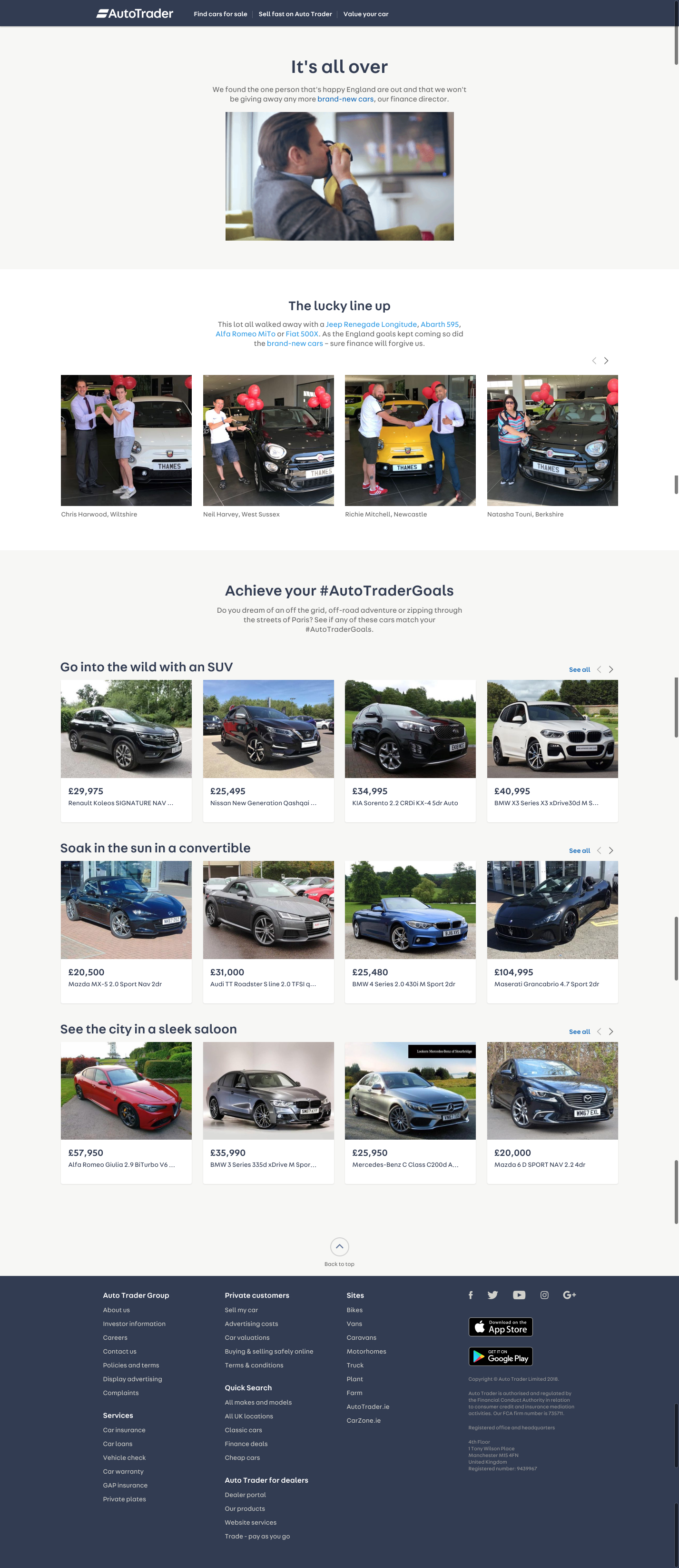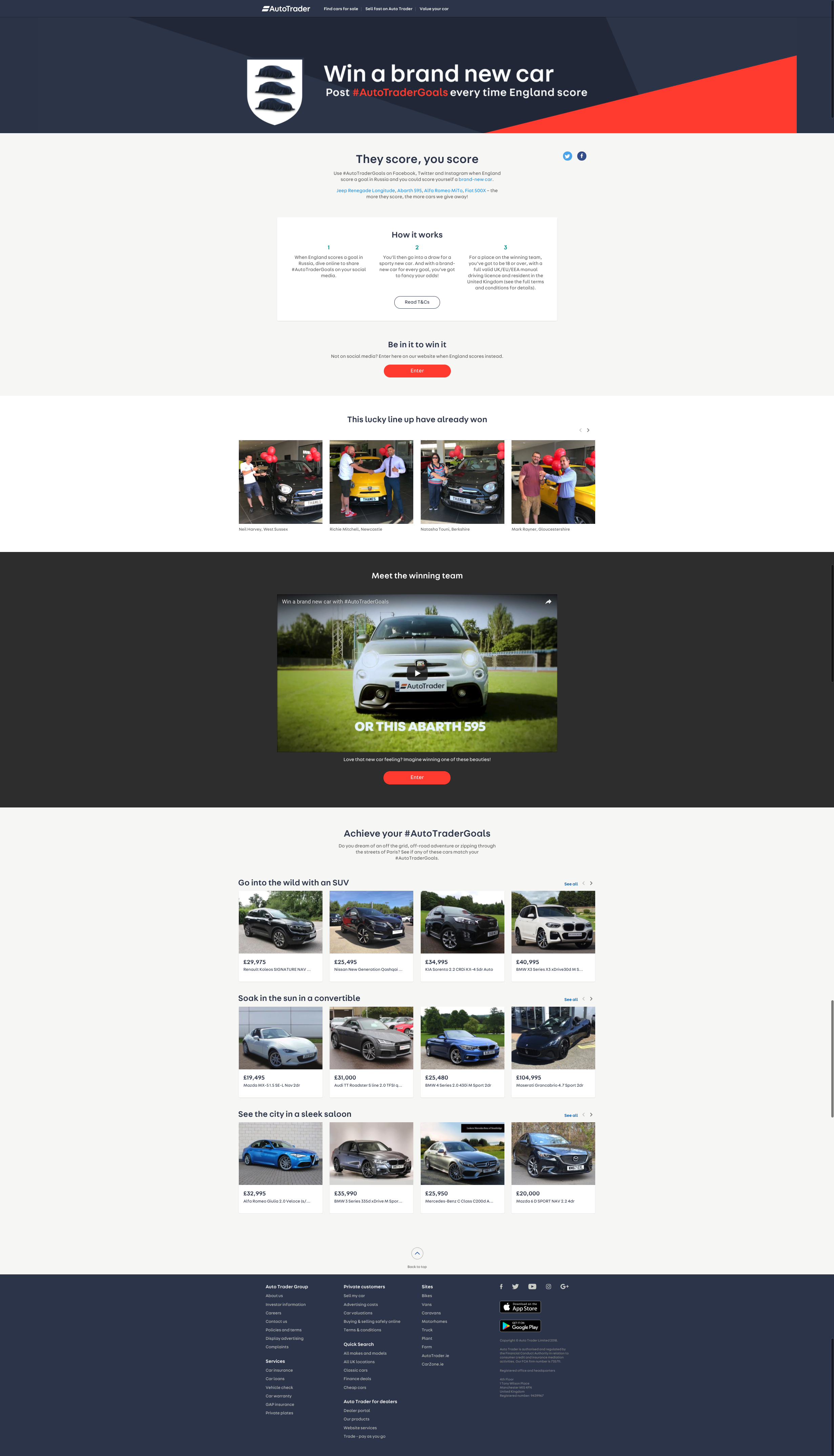 Informed the cross campaign messaging and designed the landing page for the award-winning Auto Trader Goals Campaign. Ensured cohesion between the video and social media marketing strategy and the onsite experience, to grow new audience and convert onsite.