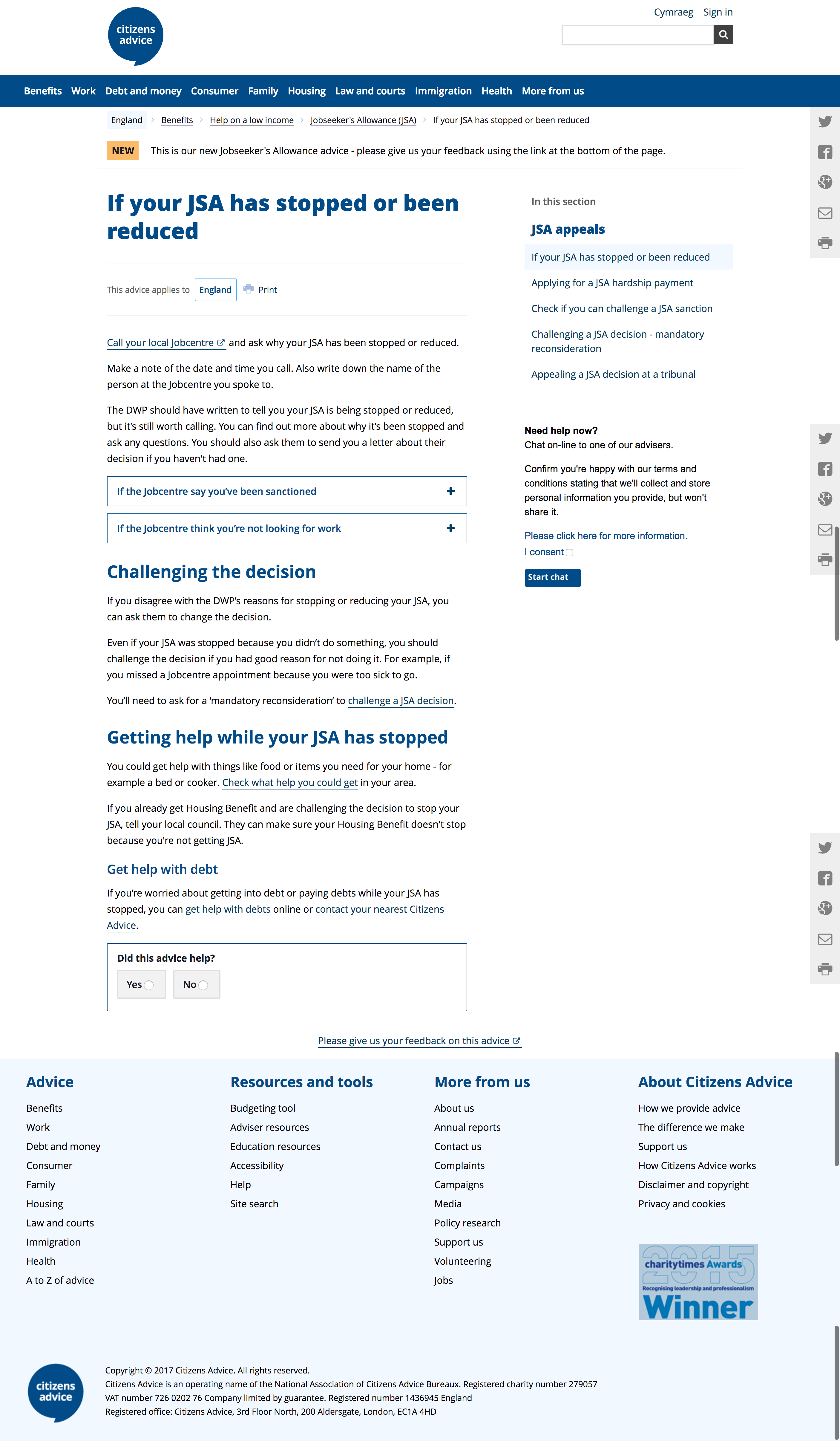 Benefits is the most visited part of the Citizens Advice site. 4,000 people a month come to them for help with Jobseeker’s Allowance alone.